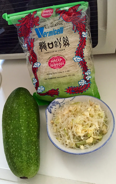 For less than $2, you can feed two persons with stir fried bean vermicelli and sliced green marrow. Add beaten eggs and a chicken stock cube and it is ready to eat. Eat it on its own or as a side dish with rice.